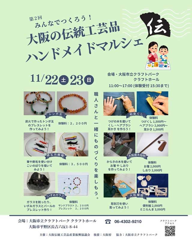 11月22日~23日 大阪市立クラフトパークにて「大阪の伝統工芸ハンドメイドマルシェ」を開催いたします。