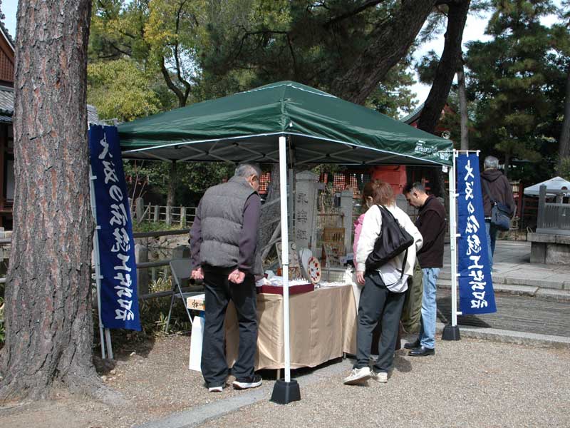 3月12日、住吉大社の初辰まいりに出展いたしました。3月に入ってから急に暖かくなり、日に日に春が近づいてきたように感じます。3月の初辰はとても暖かい一日で、参拝客ばかりでなく外国人観光客も目立つようになりました。