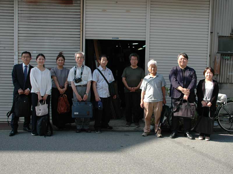 6月に入った途端暑い日が続きましたが、6月5日、約3ヶ月ぶりに第4回産地見学会を実施いたしました。今回は、近畿経済産業局、大阪府、大阪産業局から参加頂き、大阪市内での見学という事もあって電車での移動が大変にも関わらず、総勢13名による見学会となりました。