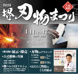 4月12日~13日、堺市産業振興センターにて「堺刃物まつり」が開催されます。